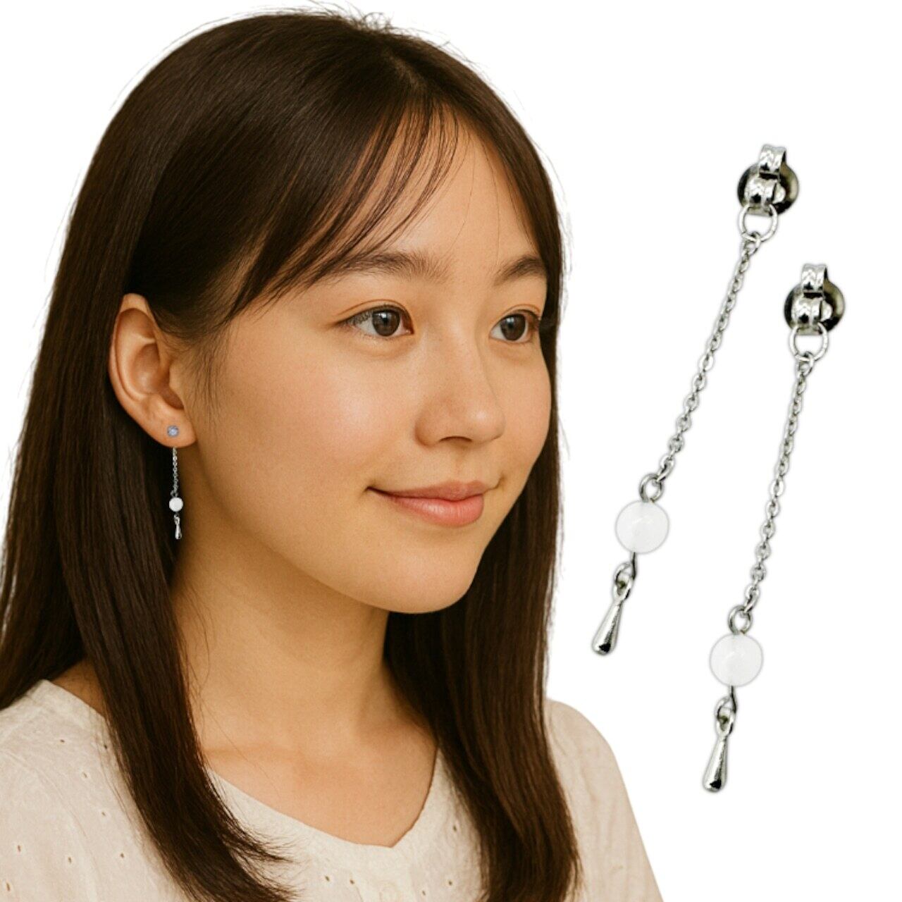 揺れるピアスキャッチ【ミルキークォーツ】 シルバー925製キュービックジルコニアピアスセット 20G対応