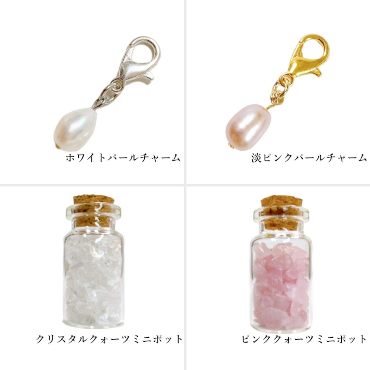 その際にご購入いただきました証として淡水パールのチャームや天然石の小瓶をお届けいたします。