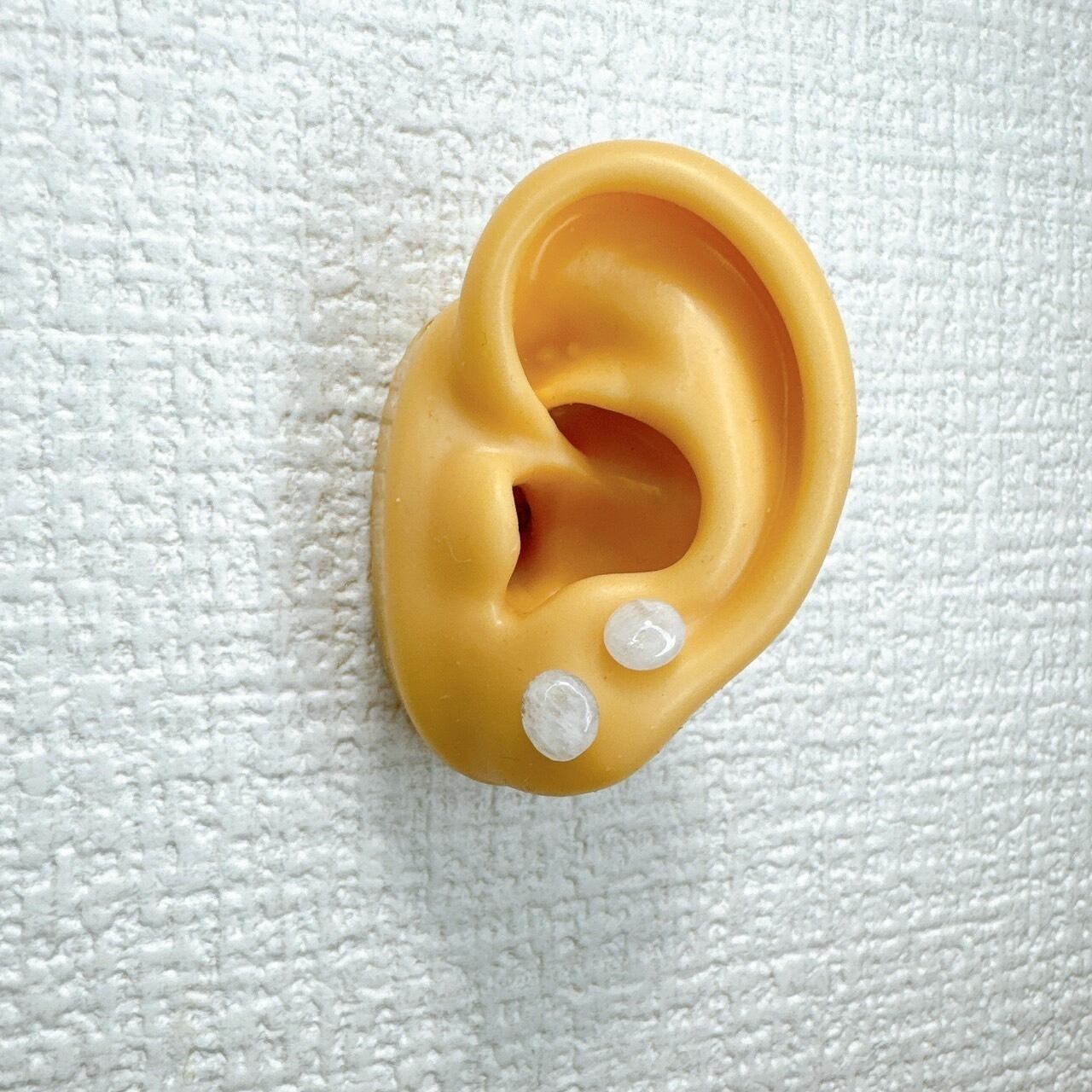 一粒の天然石(ムーンストーン)を贅沢にピアスに仕上げました。