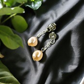 天然淡水パールのピーチカラーを贅沢に一粒ジュエリーとしてピアスキャッチにしました。