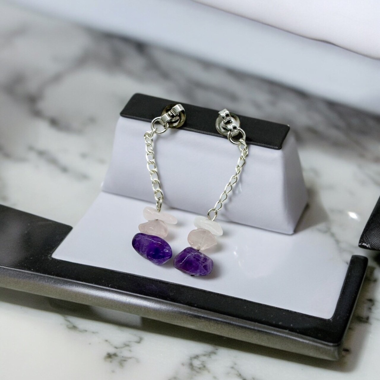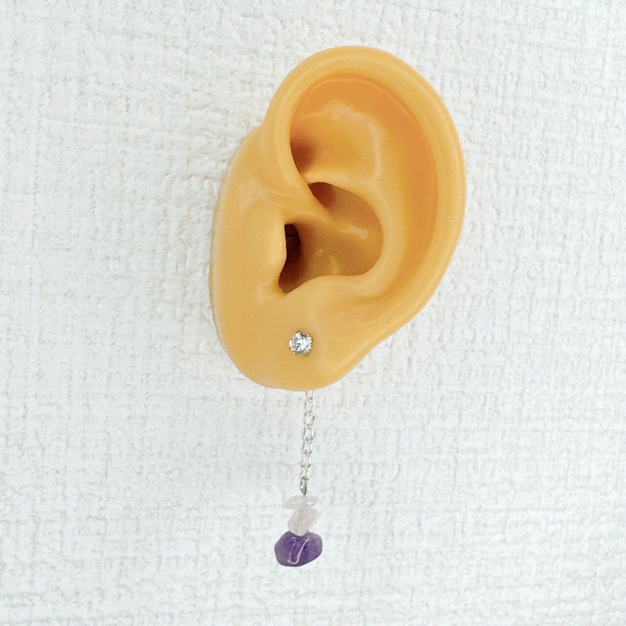 アメジストとミルキークォーツを組み合わせた大人色のピアスキャッチです。