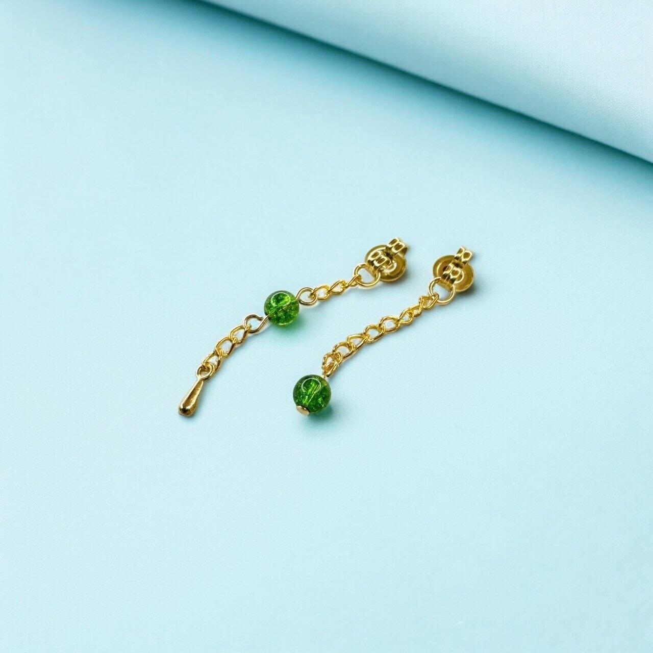天然石のペリドットを左右非対称のピアスキャッチに仕上げました