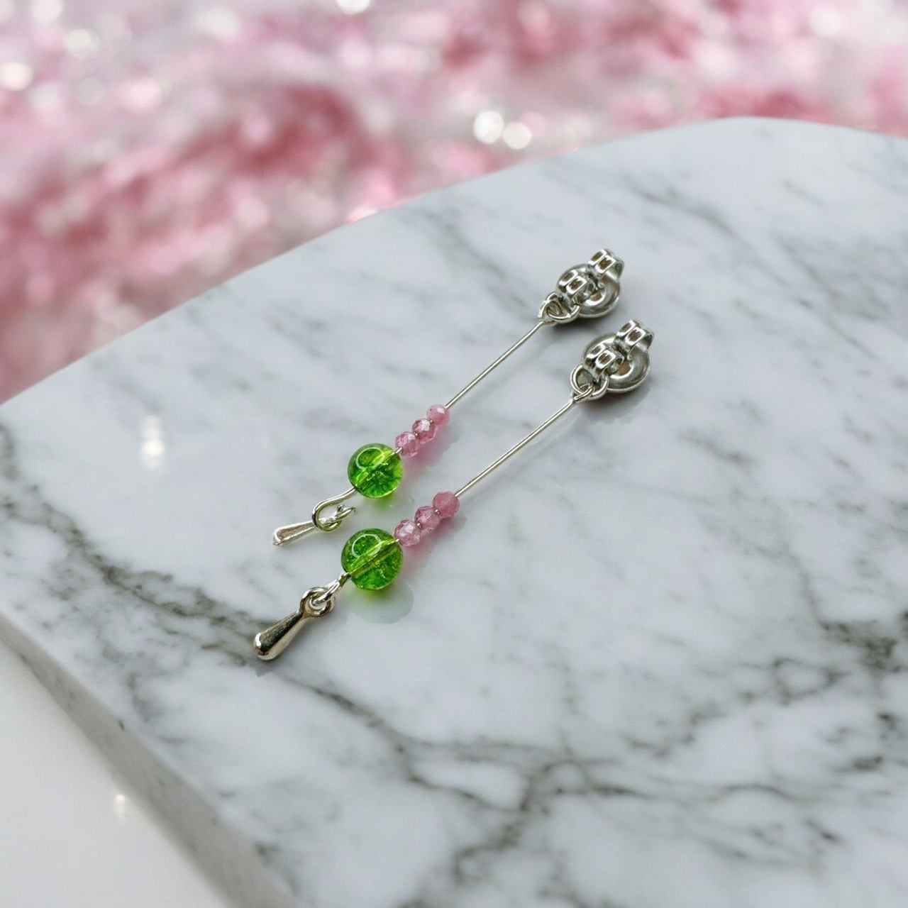 揺れるピアスキャッチ ペリドット ピンクトルマリン