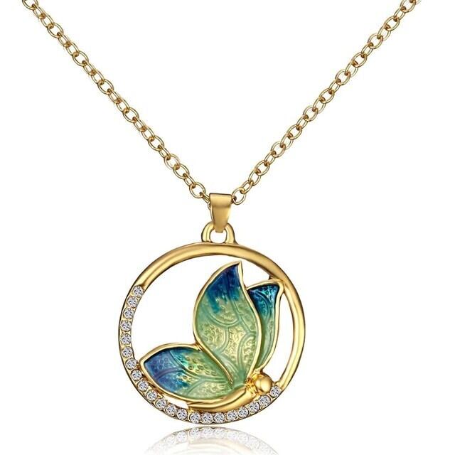 0093 ネックレス ペンダント キュービックジルコニア レディース 女性 ゴールド レッド ブルー イエロー グリーン おしゃれ かわいい キュート キラキラ カジュアル リング 蝶々 ちょうちょ CZ プチプラ 普段使い お出かけ
