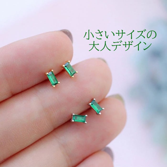 0544 極小ピアス ミニピアス エメラルドグリーン ストーン ピアス Silver925 シンプル 小さい 小さめ カジュアル フォーマル?金属アレルギー対応 レディース シルバー ゴールド グリーン スクエア
