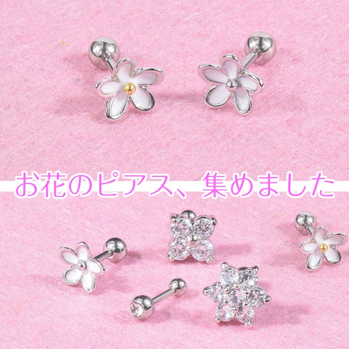 b-0028 選べる5種のお花 金属アレルギー対応 つけっぱなしピアス つけっぱなし シンプルピアス シンプル ピアス つけたまま 軟骨 ボディピアス ボディ シンプル 花 フラワー シルバー シンプル 16G 1ピース 着けっぱなし 片耳