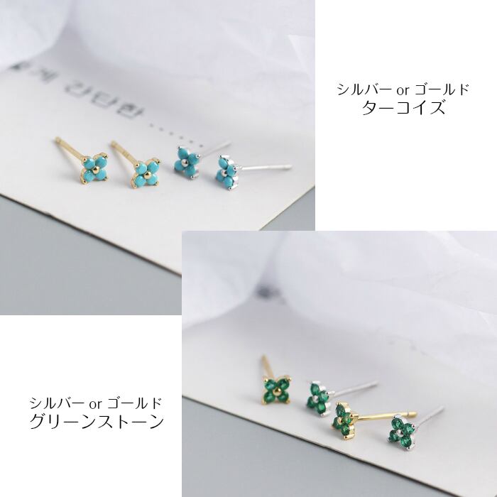 b-0103 小ぶり フラワー ピアス ストーンピアス Silver925 小さい シンプル 痒くならない 上品 つけっぱなし シルバーピアス 小さいピアス シンプルピアス アレルギー対応 金属アレルギー ターコイズ ゴールド ワインレッド パープル