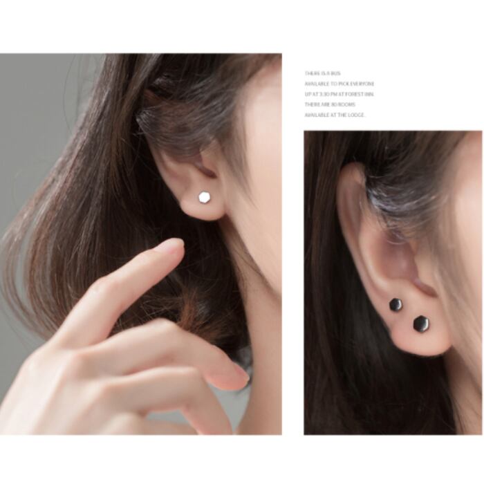 b-0107 Silver ピアス シンプル シルバー ブラック ゴールド 六角 ハチの巣 蜂の巣 ハチノス Silver925 シンプルピアス つけっぱなしピアス つけっぱなし 925 メンズ レディース