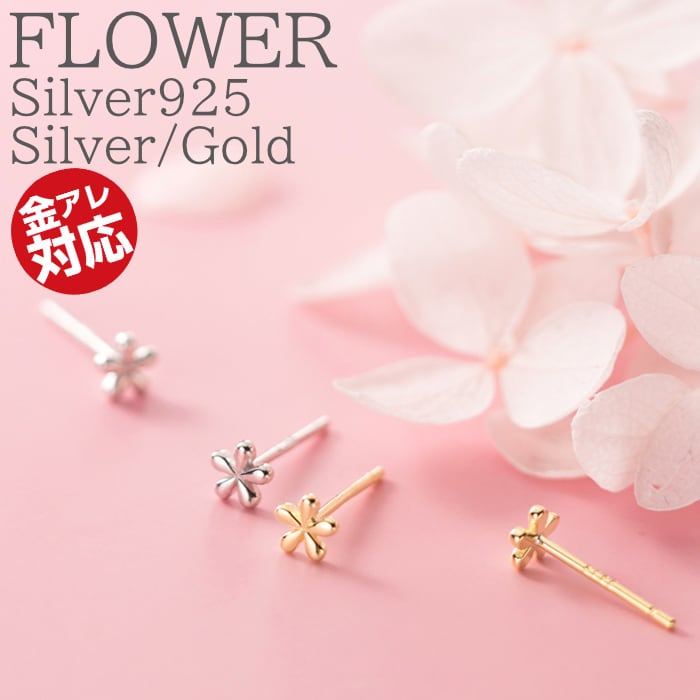b-0114 Silver925 フラワーピアス 花 ピアス シルバー ゴールド 925 両耳 2ピース シンプル フラワー シンプルピアス つけっぱなし 金属アレルギー対応 アレルギー お花 お花のピアス 小さめ 小さいピアス 小さい