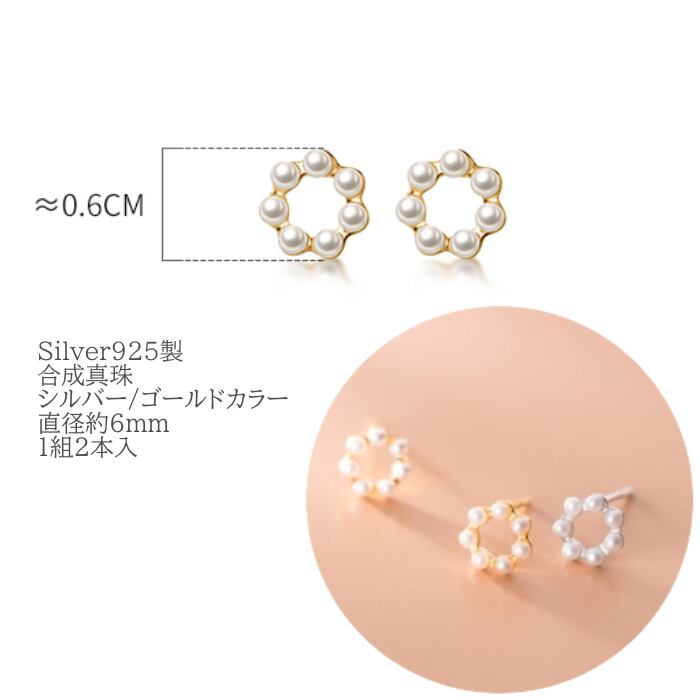 b-0117 Silver925 ピアス パール 合成パール リング 小さい ミニ シルバー ゴールド シンプル カジュアル アレルギー対応 金属アレルギー シンプルピアス 花 フラワー 人工真珠