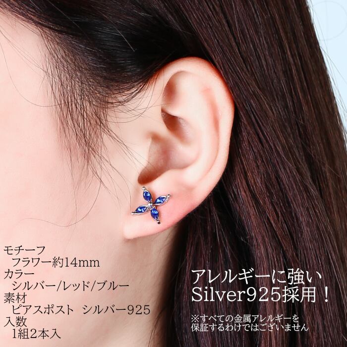 b-0131 フラワーピアス 花ピアス シンプルピアス ラインストーン レッド ブルー ホワイト シルバー ピアス シンプル お花 シルバー925 アレルギー 925 アレルギー対応 金属アレルギー