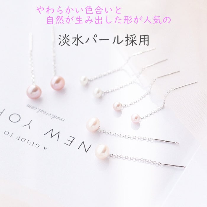 b-0154 パール ピアス 耳にかける 揺れる 淡水真珠 金属アレルギー対応 普段使い 引っかかりにくい 痒くならない Silver925 ホワイト ピンク パープル シンプル ゆらゆら 小粒 大粒 レディース アレルギー対応