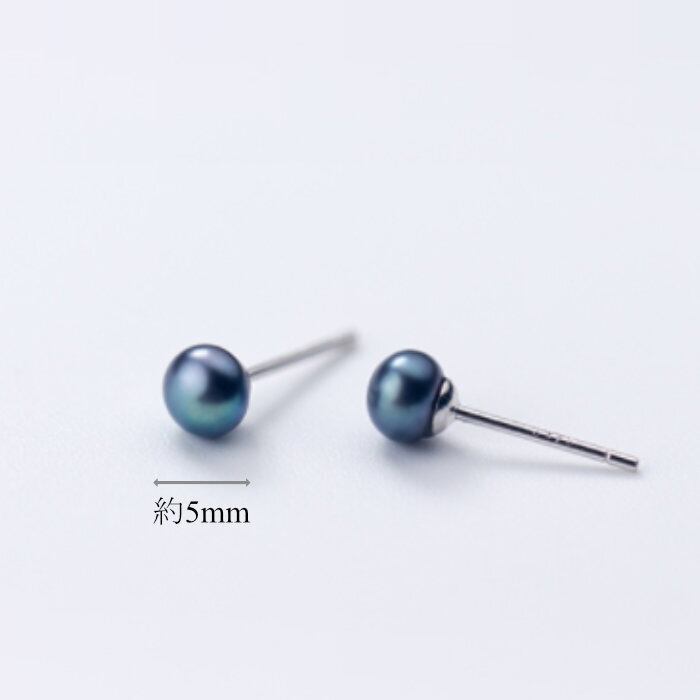 b-0182 人工ダークネイビーパールピアス Silver925 レディース メンズ ダークブルー ブラックパール 青黒 一粒 パール 染色パール 染色淡水パール 楕円