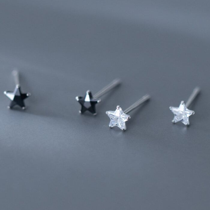 b-0186 スター ピアス メンズ レディース Silver925 シルバー クリア ブラック シンプル ラインストーン 2組 1セット 5mm セカンド ファースト アレルギー