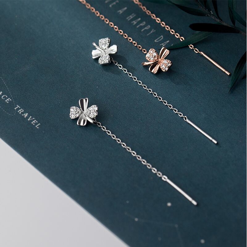 b-0210 ピアス クローバー チェーン シンプル 軟骨 金属アレルギー シルバー 小さめ ミニ シルバー925 アレルギー対応 20G 四つ葉のクローバー キュービックジルコニア シンプルピアス セカンドピアス 軟骨ピアス アレルギー対応ピアス 仕事