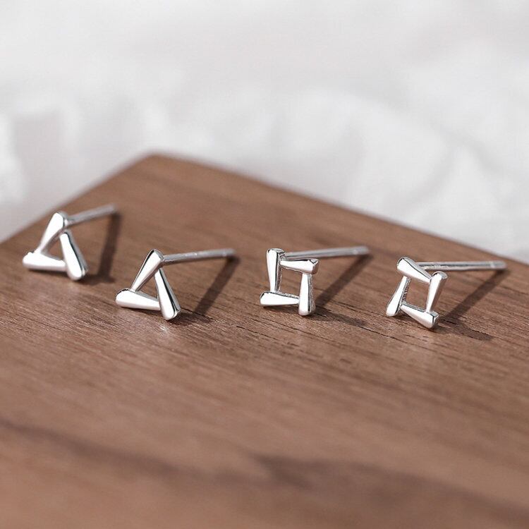 b-0378 トライアングルピアス スクエアピアス シルバー999 小さいピアス 三角 四角 アレルギー対応 小さい ミニ シルバー レディース メンズ 女性 男性 両耳 かわいい シンプル