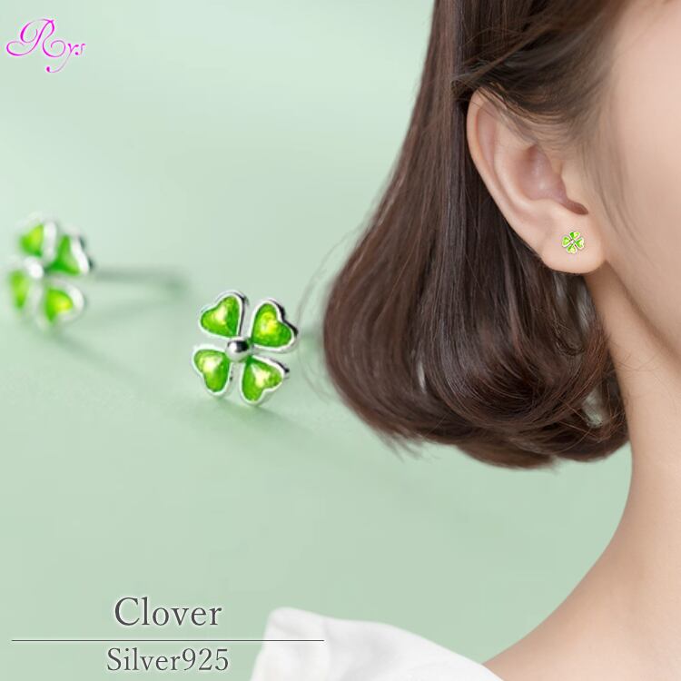 b-0440 四つ葉のクローバーピアス シルバー925 ピアス クローバー 四葉 幸せを呼ぶ シンプル デザイン モチーフ アレルギー対応 レディース 女性